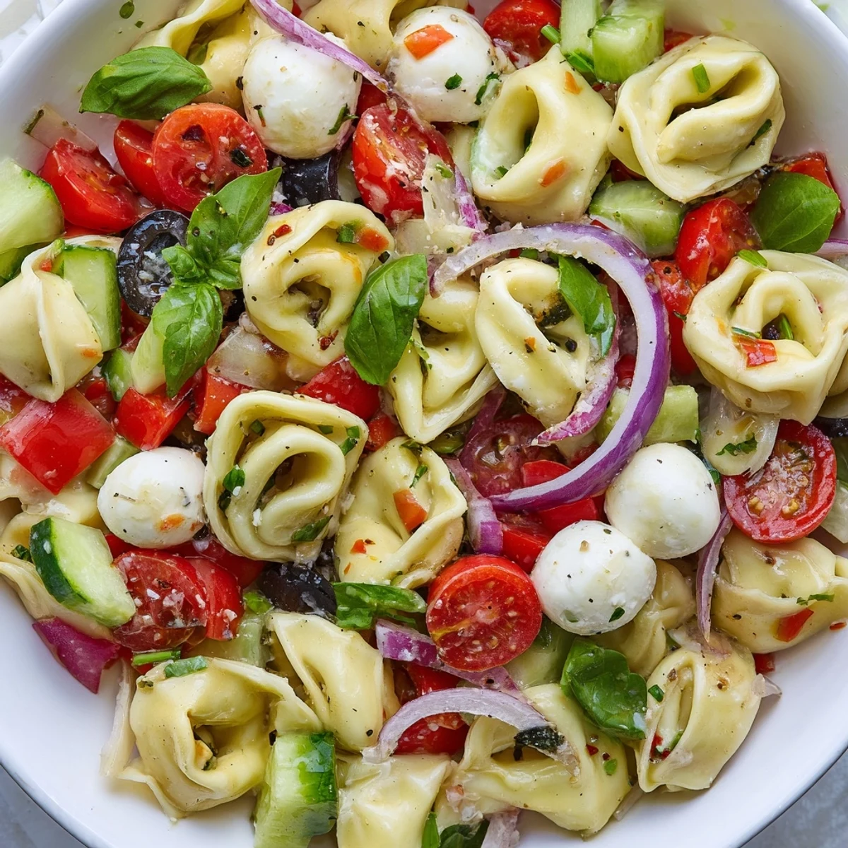 The kitchen was chaos that Sunday afternoon, my sister's bridal shower supposed to start in under an hour and I hadn't even started cooking yet. I'd promised to bring something substantial but not heavy, something that could sit on a buffet table without wilting or needing reheating. That's when I remembered the tortellini salad my Italian college roommate used to make, those little cheese-stuffed pillows soaking up dressing while all the fresh vegetables kept everything crisp and bright.