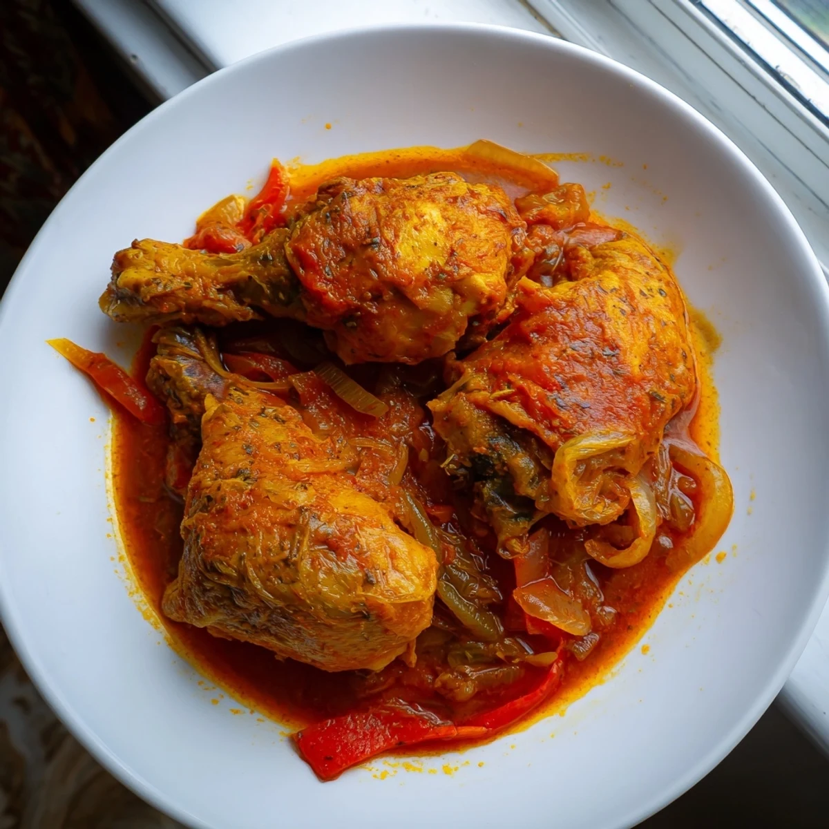 This vibrant West African dish features succulent chicken pieces marinated in lemon, garlic, and ginger, then browned and simmered slowly in a rich tomato-based sauce. The aromatic blend includes onions, bell peppers, tomato paste, dried thyme, paprika, and a bay leaf, with optional scotch bonnet for those who enjoy heat. After 30-35 minutes of gentle braising in chicken broth, the meat becomes incredibly tender while the sauce thickens into a perfect consistency for spooning over fluffy white rice or couscous.